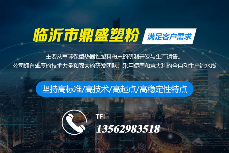 臨沂市鼎盛塑粉有限公司源于2015年3月,公司坐落于臨沂市河東區后翟店工業園區內。主要從事環保型熱固性塑料粉末的研制開發與生產銷售。公司擁有雄厚的技術力量和強大的研發團隊。采用德國和意大利的全自動生產流水線,年生產各類高端環保塑料粉末5000余噸,其中出口2000多噸。